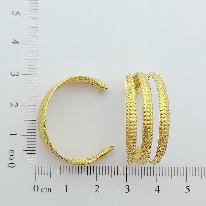 AC LATÃO ARGOLA G 3 TIRAS TXT | MÍNIMO 10PÇ POR ACESSÓRIO => Peso:1,732g