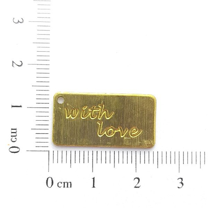 AC LATÃO PLACA ESCRITA WITH LOVE 1 FURO
