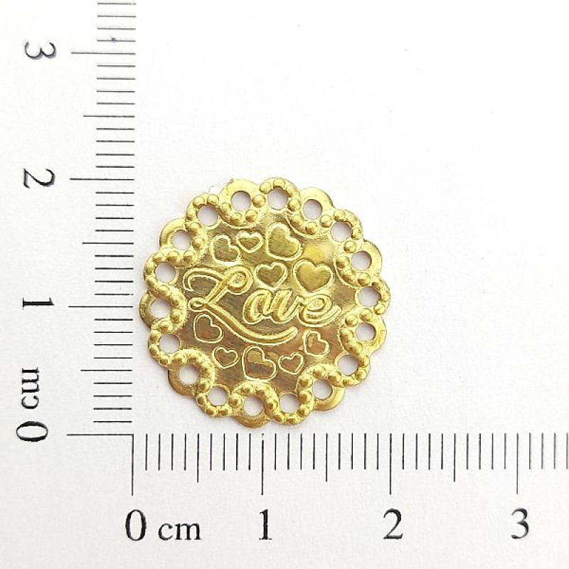 AC LATÃO REDONDO LOVE FUROS | MÍNIMO 5OG POR ACESSÓRIO => Peso:0,94g