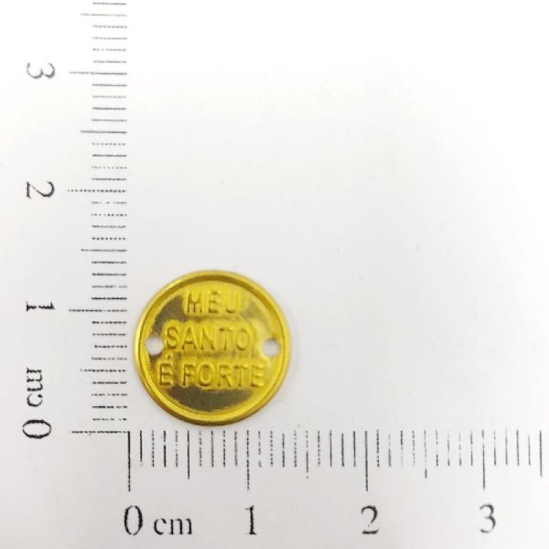 AC LATÃO REDONDO P MEU SANTO É FORTE 2 FUROS| MÍNIMO 5OG POR ACESSÓRIO => Peso:0,46g