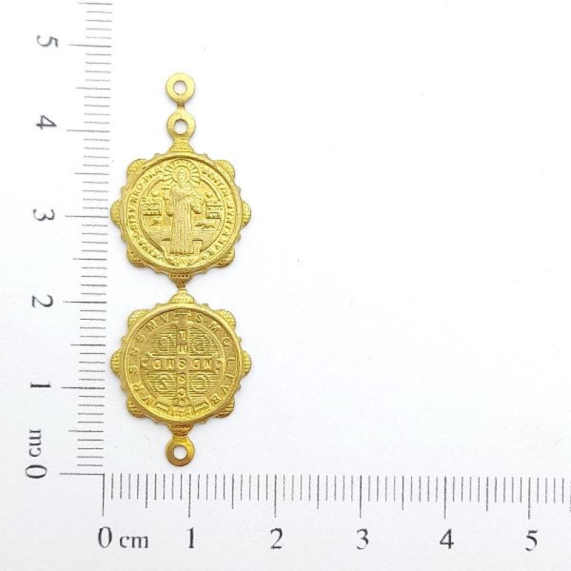 AC LATÃO SÃO BENTO ESTAMPADO DUPLO | MÍNIMO 5OG POR ACESSÓRIO => Peso:1,312g