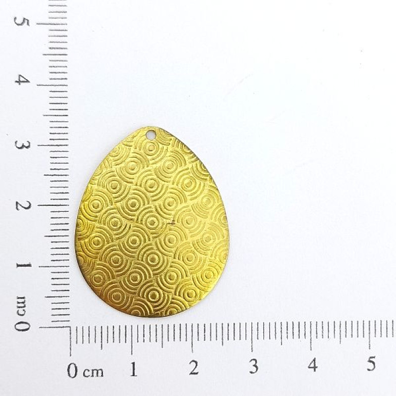 AC LATÃO GOTA G CHEIA TXT CIRCULOS 1 FURO | MÍNIMO 5OG POR ACESSÓRIO => Peso:2,35g