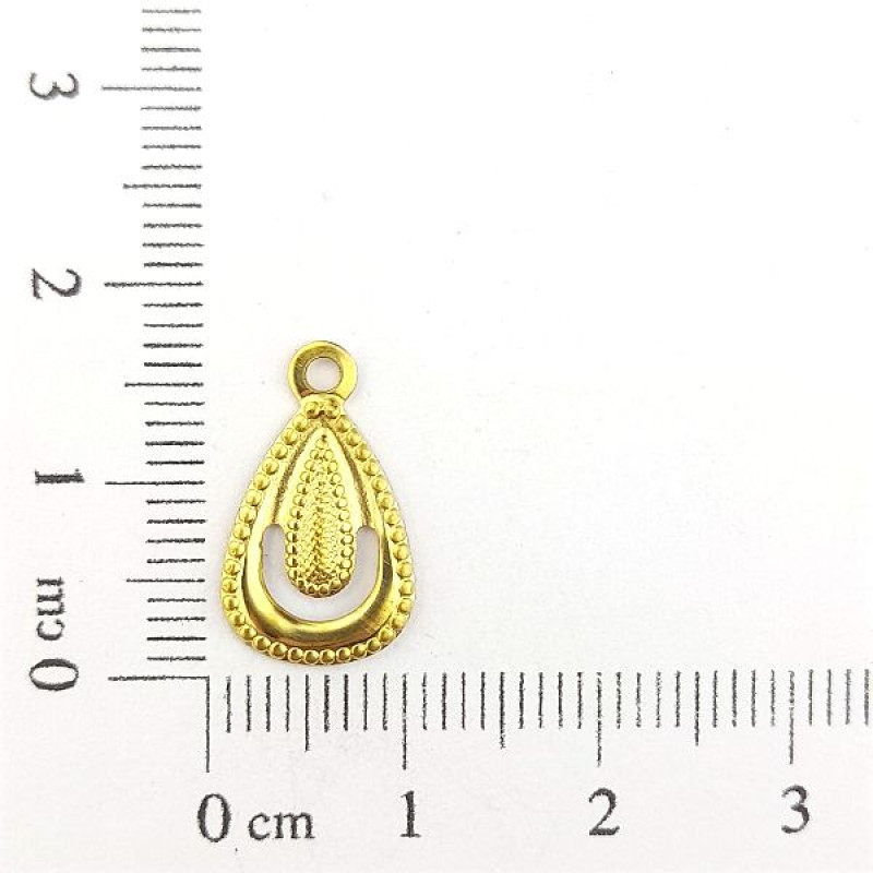 AC LATÃO GOTA VZD BORDA MEIO TXT 1 FURO | MÍNIMO 5OG POR ACESSÓRIO => Peso:0,33g Largura:9,3cm Altura:15,6cm