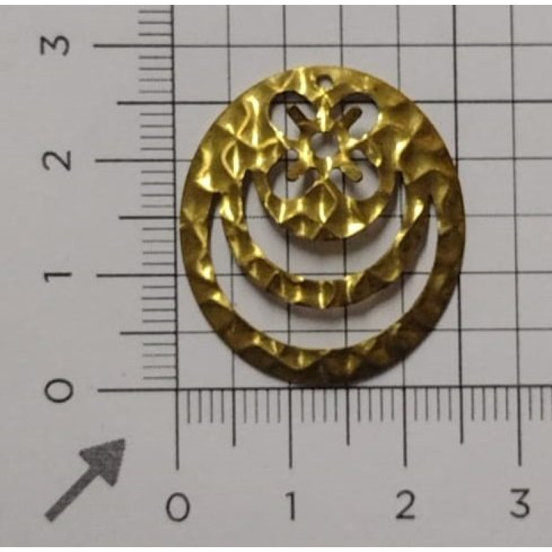AC LATÃO REDONDO G TXT VZD CHATAO SS20 1 FURO | MÍNIMO 5OG POR ACESSÓRIO => Peso:1,58g Largura:2,5cm Altura:2,8cm