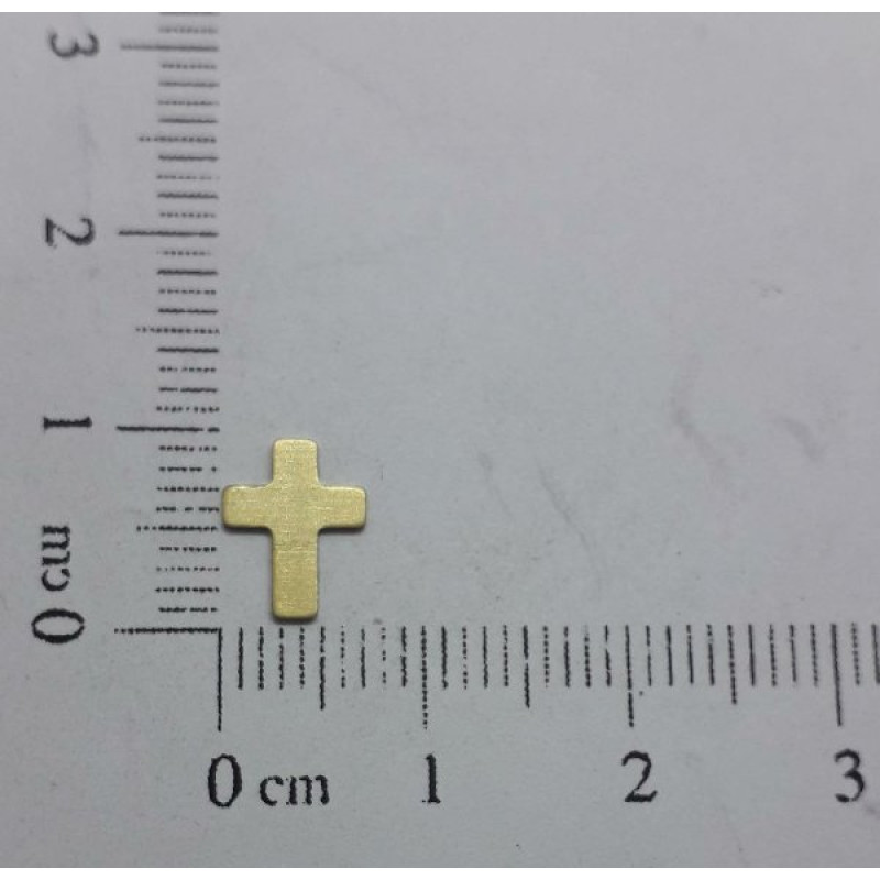 AC LATÃO CRUZ M 9MM LISA RETA S/ FURO MÍNIMO 5OG POR ACESSÓRIO => Peso:0,087g