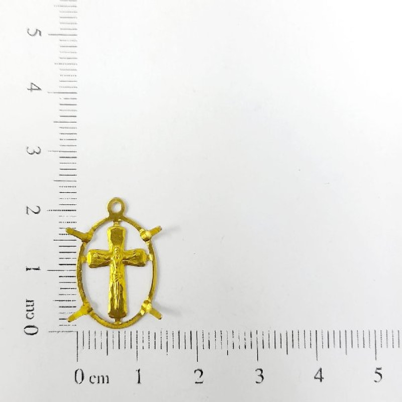 AC LATÃO OVAL CRUZ CHATÃO 13X18 1 ARG | MÍNIMO 5OG POR ACESSÓRIO => Peso:0,37g Largura:12,8cm Altura:19,9cm