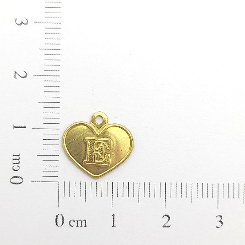 AC LATÃO CORAÇÃO LETRA E 1 ARG | MÍNIMO 5OG POR ACESSÓRIO => Peso:0,48g Altura:3,5cm