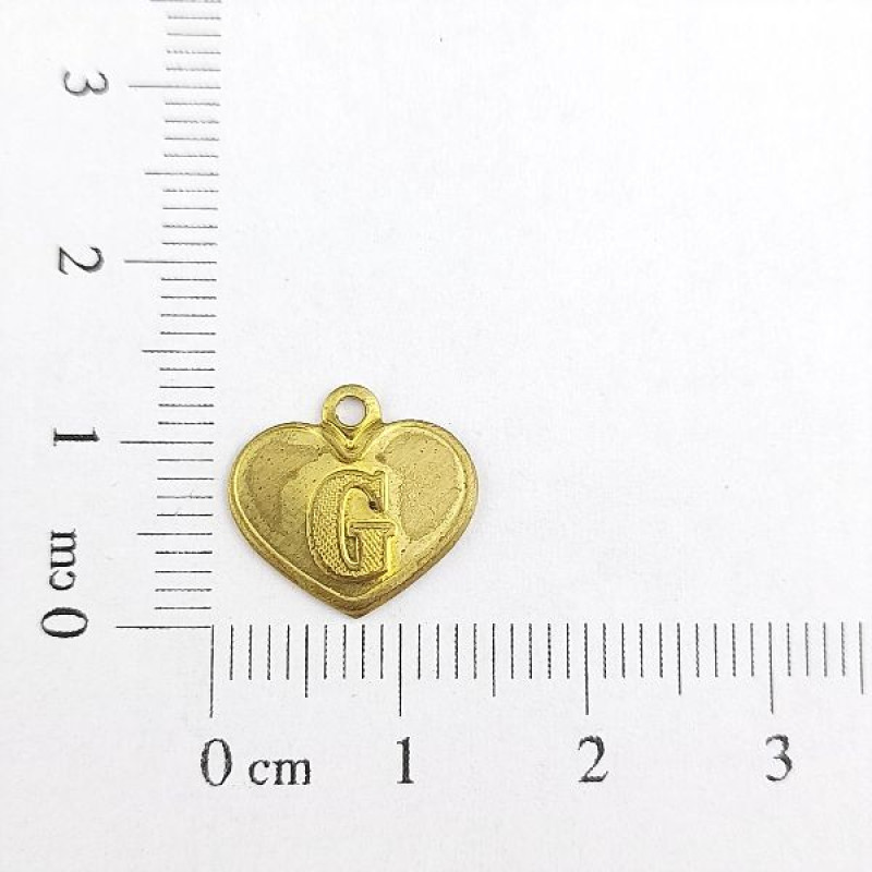 AC LATÃO CORAÇÃO LETRA G 1 ARG | MÍNIMO 5OG POR ACESSÓRIO => Peso:0,48g Altura:3,5cm