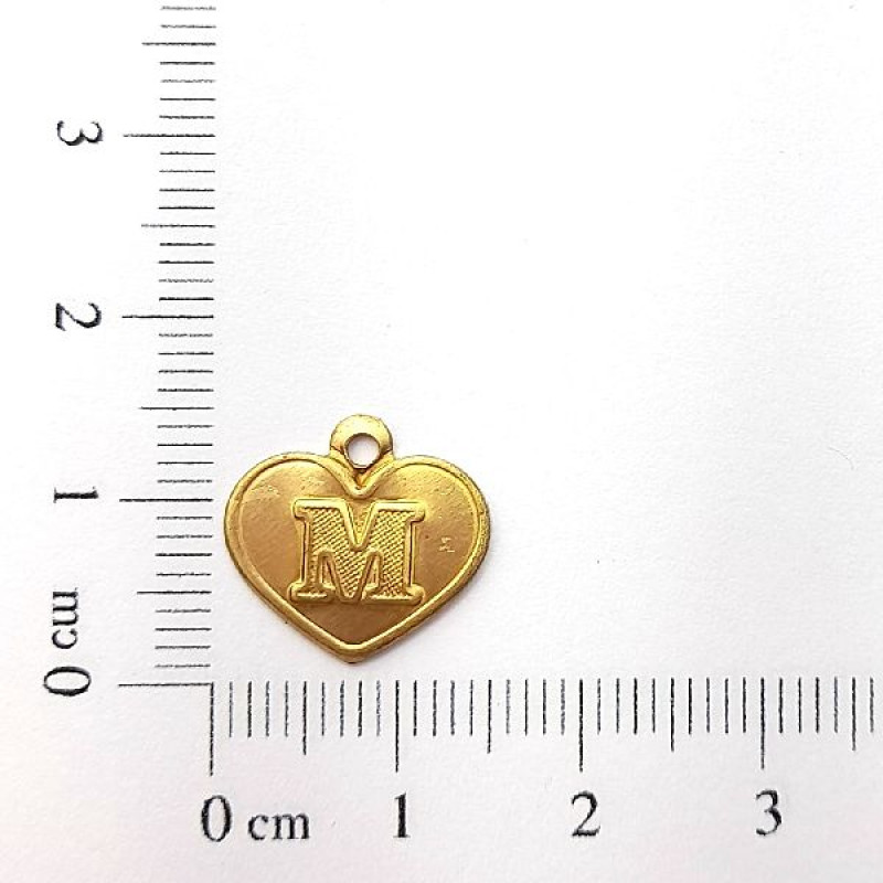AC LATÃO CORAÇÃO LETRA M 1 ARG | MÍNIMO 5OG POR ACESSÓRIO => Peso:0,48g Altura:3,5cm