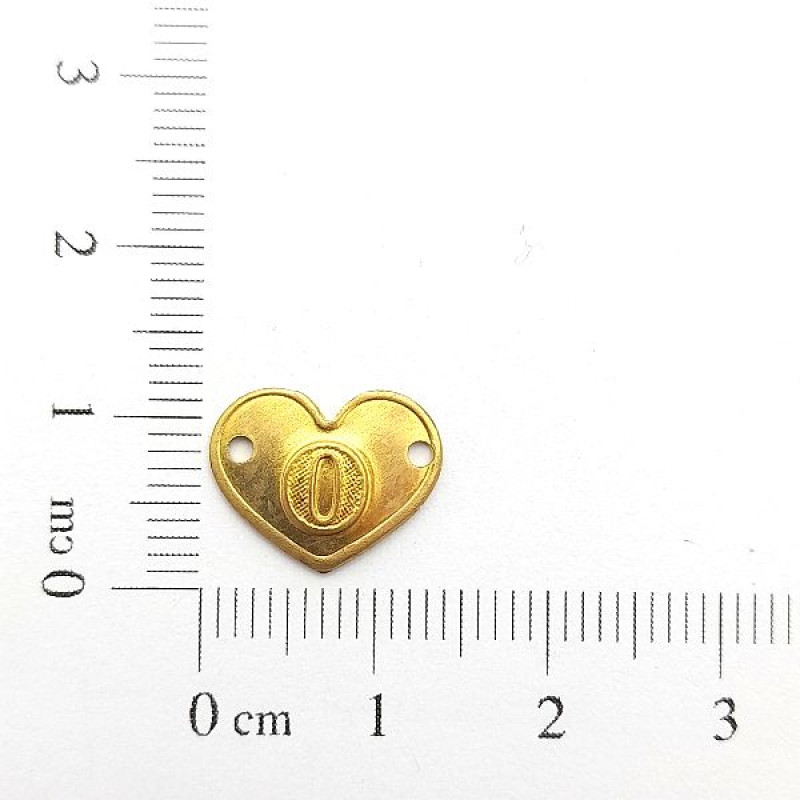 AC LATÃO CORAÇÃO LETRA O 2 FUROS | MÍNIMO 5OG POR ACESSÓRIO => Peso:0,43g Altura:3,5cm
