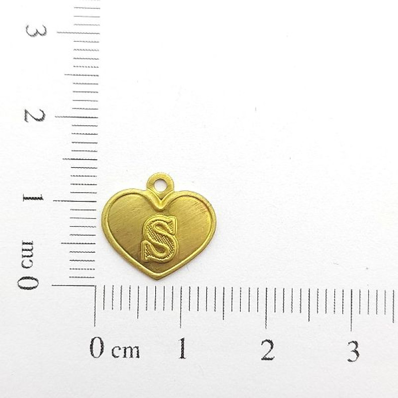 AC LATÃO CORAÇÃO LETRA S 1 ARG | MÍNIMO 5OG POR ACESSÓRIO => Peso:0,48g Altura:3,5cm