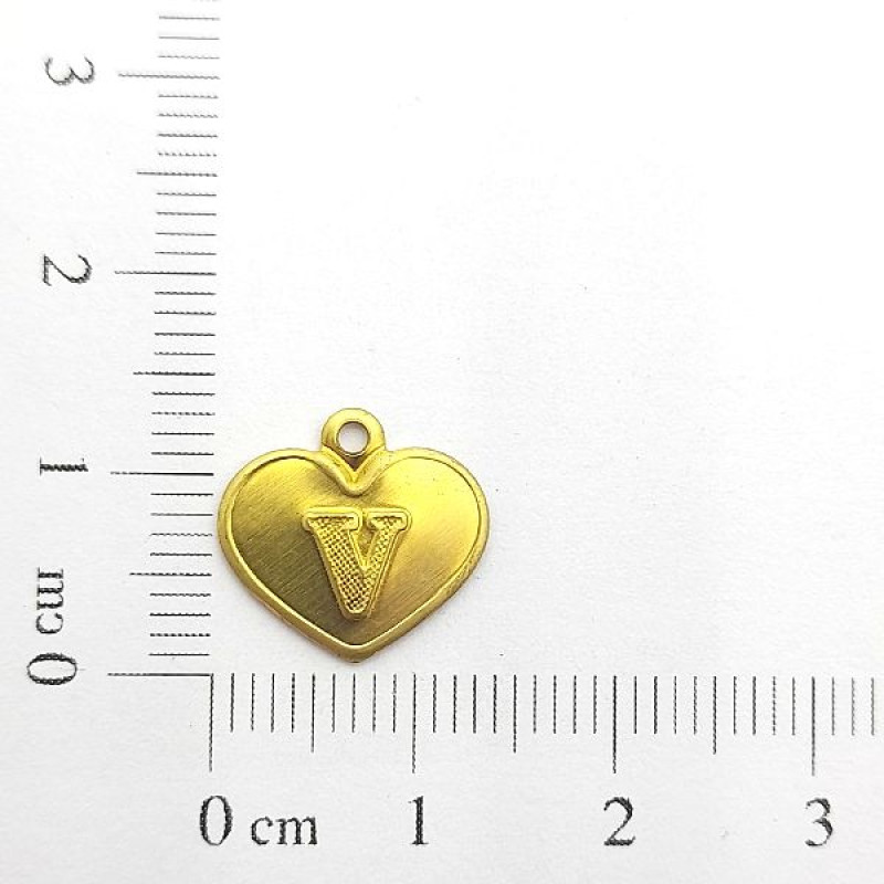 AC LATÃO CORAÇÃO LETRA V 1 ARG | MÍNIMO 5OG POR ACESSÓRIO => Peso:0,48g Altura:3,5cm