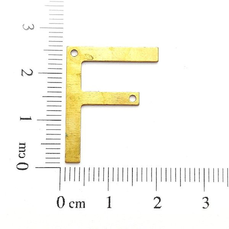 AC LATÃO LETRA "F" LISA 2 FUROS | MÍNIMO 5OG POR ACESSÓRIO => Peso:0,72g