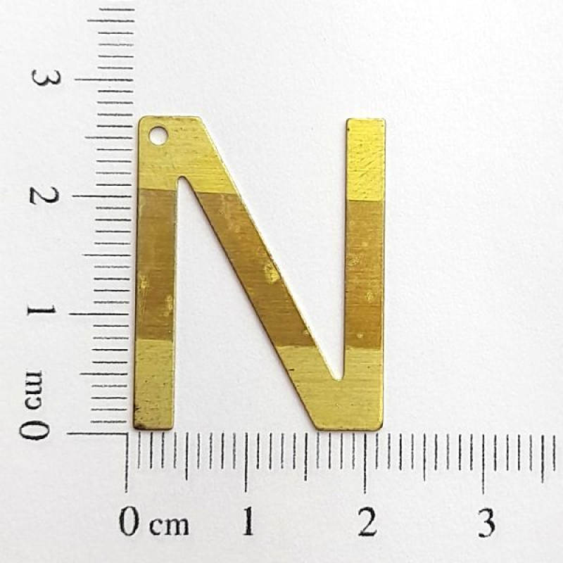 AC LATÃO LETRA "N" LISO 1 FURO | MÍNIMO 5OG POR ACESSÓRIO => Peso:1,01g Largura:19,7cm Altura:24,8cm