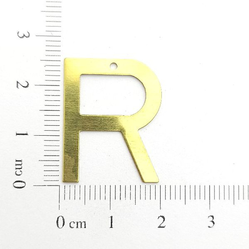 AC LATÃO LETRA "R" LISO 1 FURO | MÍNIMO 5OG POR ACESSÓRIO => Peso:0,99g Largura:19,9cm Altura:25cm