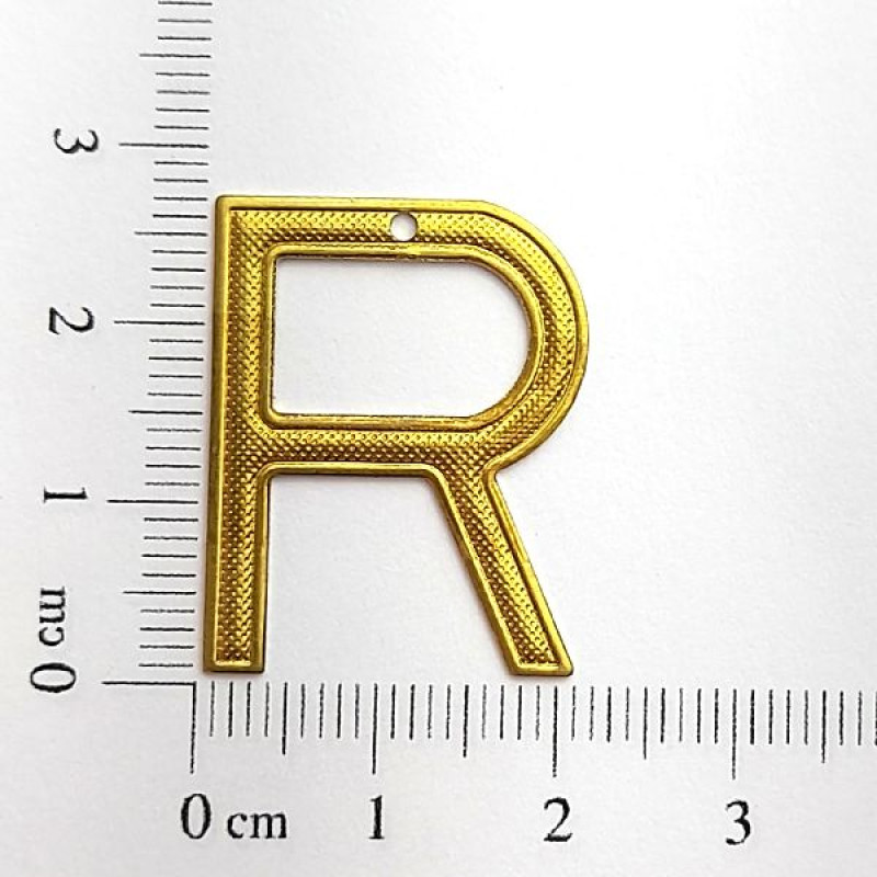 AC LATÃO LETRA "R" TXT 1 FURO | MÍNIMO 5OG POR ACESSÓRIO => Peso:0,98g Largura:19,9cm Altura:25cm