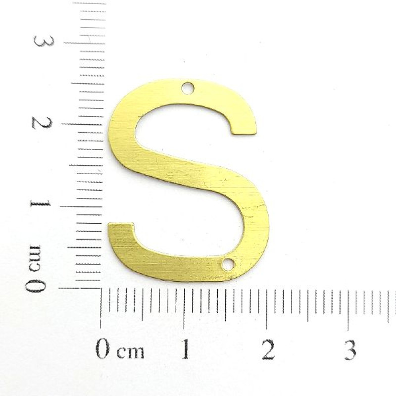 AC LATÃO LETRA "S" LISO 2 FUROS | MÍNIMO 5OG POR ACESSÓRIO => Peso:0,88g