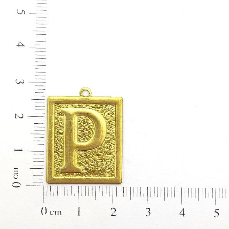 AC LATÃO PLACA TXT LETRA P ARG | MÍNIMO 5OG POR ACESSÓRIO => Peso:2,4g