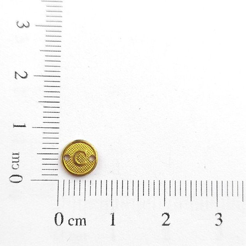 AC LATÃO REDONDO P TXT LETRA C 2 FUROS | MÍNIMO 5OG POR ACESSÓRIO => Peso:0,18g