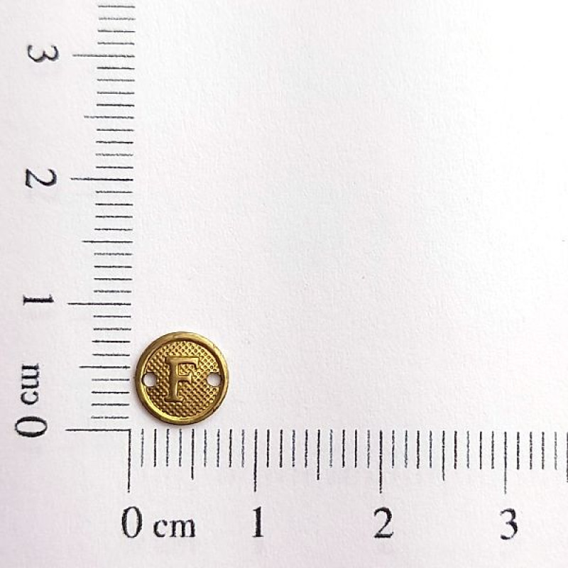 AC LATÃO REDONDO P TXT LETRA F 2 FUROS | MÍNIMO 5OG POR ACESSÓRIO => Peso:0,18g