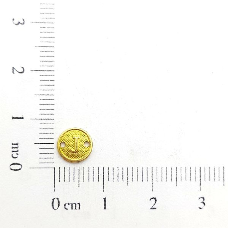 AC LATÃO REDONDO P TXT LETRA J 2 FUROS | MÍNIMO 5OG POR ACESSÓRIO => Peso:0,18g