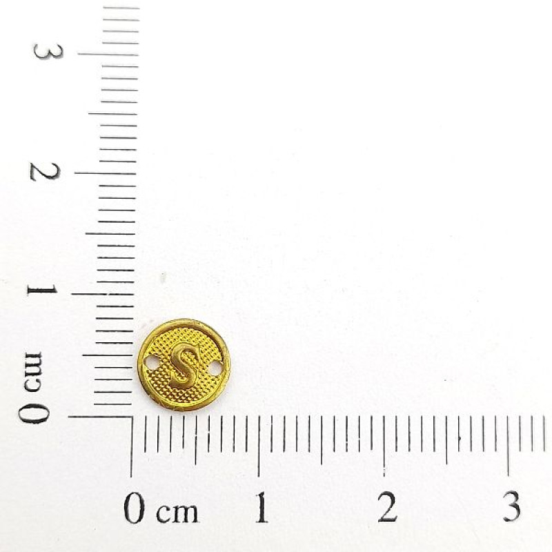 AC LATÃO REDONDO P TXT LETRA S 2 FUROS | MÍNIMO 5OG POR ACESSÓRIO => Peso:0,18g