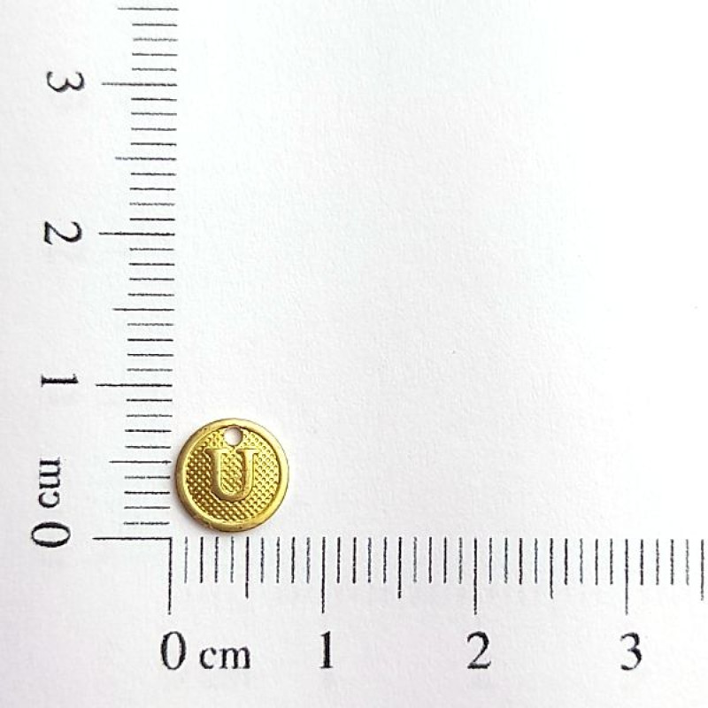 AC LATÃO REDONDO P TXT LETRA U 1 FURO | MÍNIMO 5OG POR ACESSÓRIO => Peso:0,18g