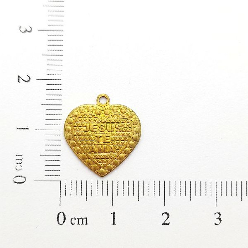 AC LATÃO CORAÇÃO M "JESUS TE AMA" 1 ARG | MÍNIMO 5OG POR ACESSÓRIO => Peso:0,68g Largura:15,3cm Altura:16,4cm