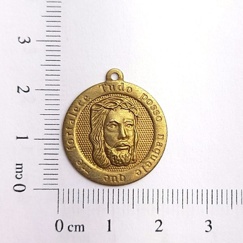 AC LATÃO REDONDO FACE DE CRISTO "TUDO POSSO" 1 ARG